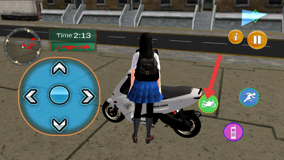 2、優(yōu)先靠近綠色光柱觸發(fā)任務,推進主線劇情,點擊右側綠色摩托功能鍵,騎乘摩托車加速移動,提升探索的效率。