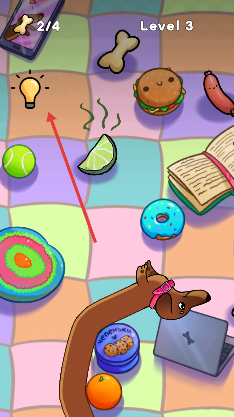 2、長按操控小狗伸長身體,遇到迷??梢允褂脽襞萏崾緛碚页鲎罴崖肪€,推進(jìn)關(guān)卡的進(jìn)度。