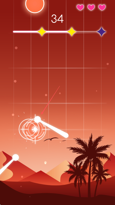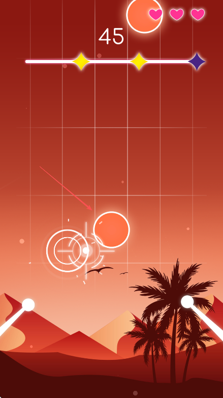 3、注意躲避可能出現(xiàn)的障礙物或干擾元素、避免損失愛心、持續(xù)準確擊鼓沖擊更高分數(shù)。