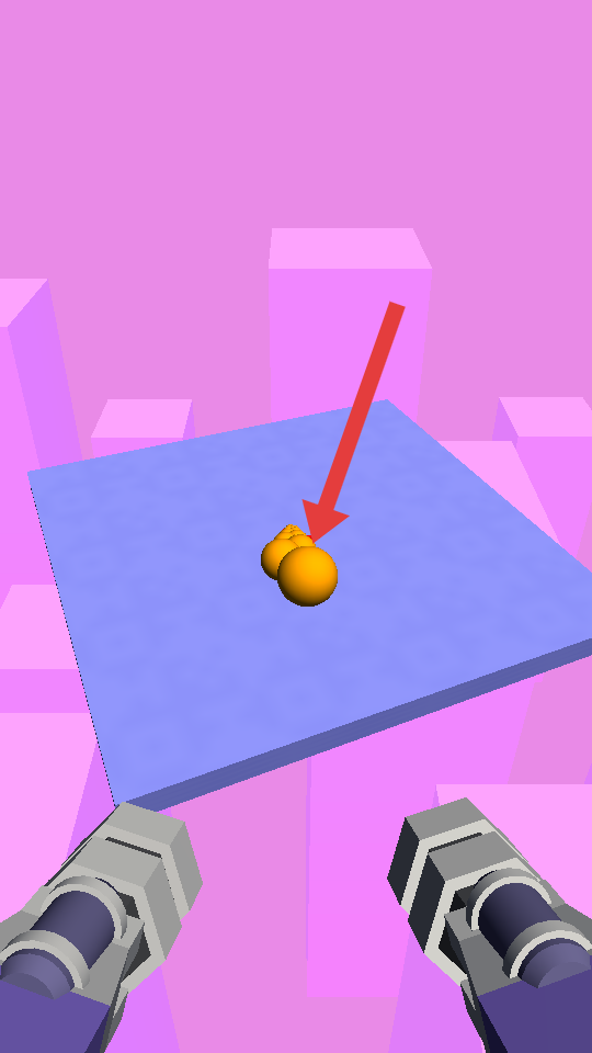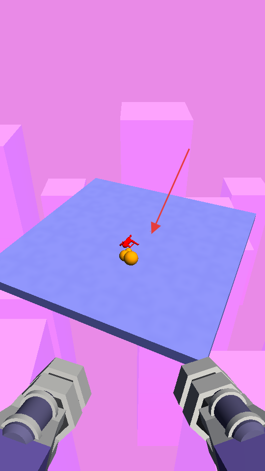 1、操控雙持槍械,瞄準(zhǔn)場景里的橙色球體射擊,觸發(fā)與紅色小人、球體的互動(dòng),開啟基礎(chǔ)玩法體驗(yàn)。