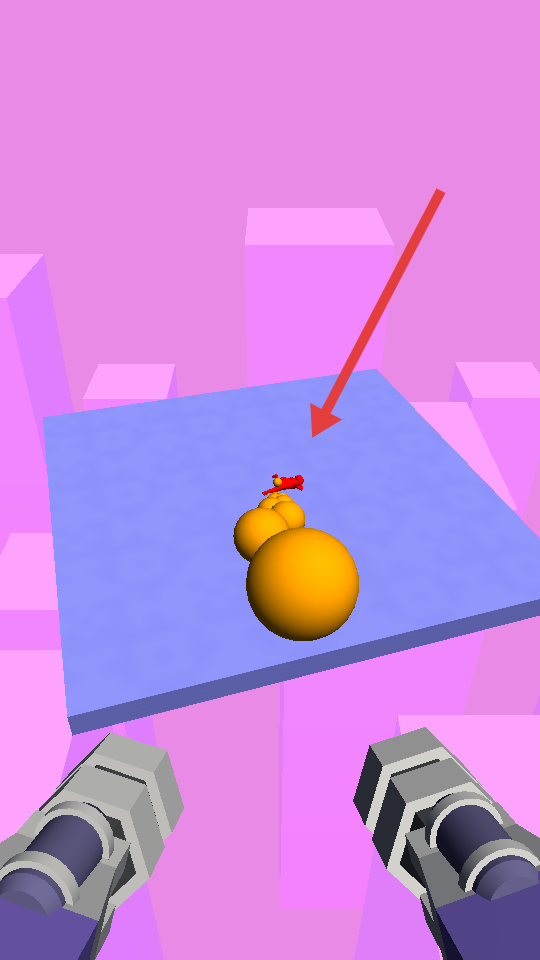 2、利用射擊推動(dòng)紅色小人移動(dòng),引導(dǎo)其觸碰橙色球體,借助物理效果,在平臺(tái)場景推進(jìn),完成關(guān)卡流程。