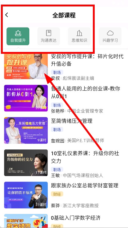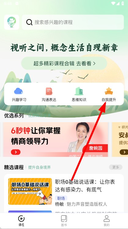 1、打開APP,在首頁點擊自我提升,進入課程分類列表頁。