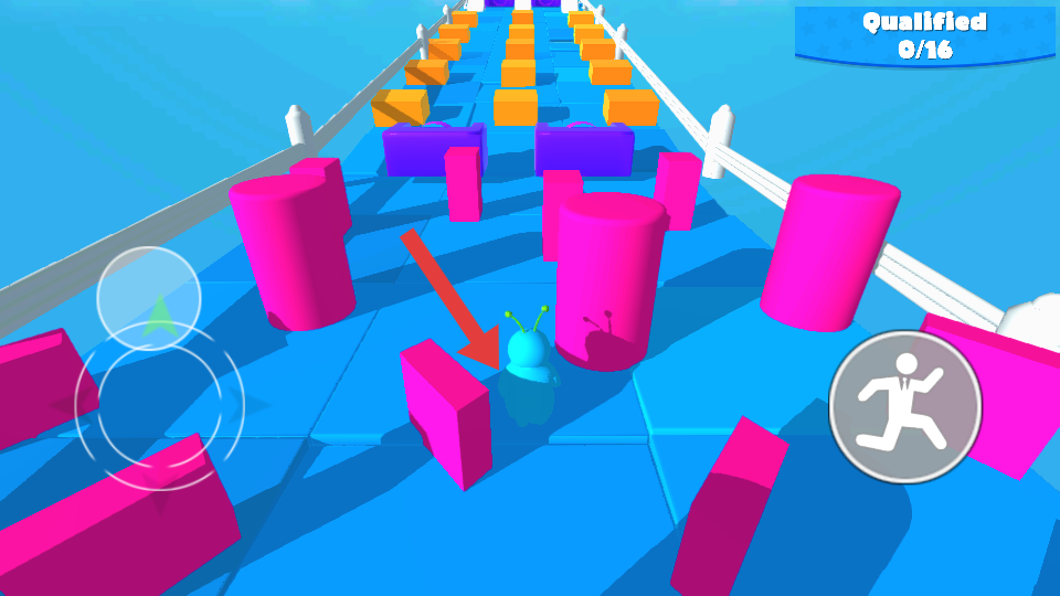 1、操控角色在賽道上移動,可通過左側(cè)虛擬搖桿調(diào)整方向,這是在障礙賽道中行進的基礎(chǔ)操作,精準(zhǔn)控制方向才能避開障礙。