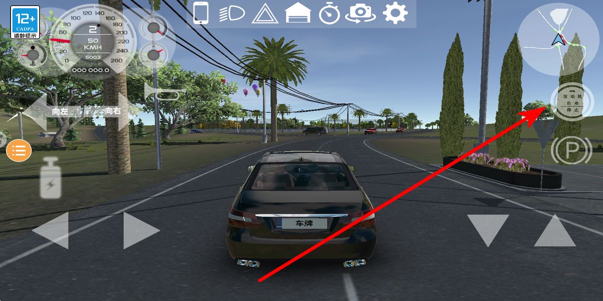 3、進(jìn)入駕駛環(huán)節(jié),找到發(fā)動機啟動停止操作,進(jìn)行操作啟動車輛,隨后利用方向等控制按鍵,操控車輛在道路上行駛,暢享駕駛樂趣。