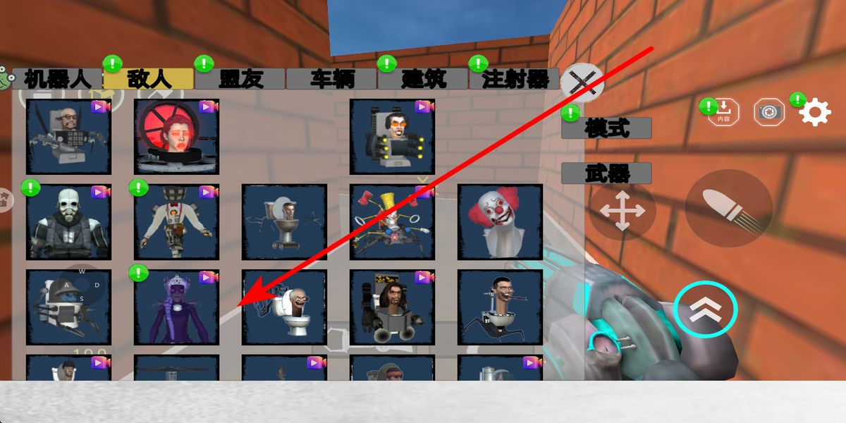3、當(dāng)需要放置模組時(shí),打開模組選擇界面,里面有機(jī)器人、敵人等各類模組可供選擇,將其放置到城市中的相應(yīng)位置,打造出獨(dú)特的城市場景。