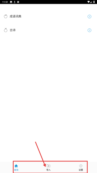 1、打開知識(shí)查詢類應(yīng)用,點(diǎn)擊底部導(dǎo)入選項(xiàng),進(jìn)入導(dǎo)入功能頁面。