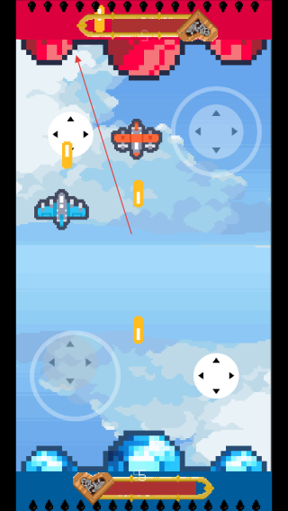 2、觀察敵方橙色和藍(lán)色飛機(jī)位置及動(dòng)向,抓住時(shí)機(jī)靠近,發(fā)射子彈進(jìn)行攻擊。