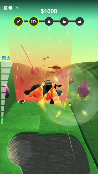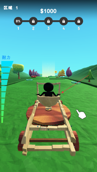 1、進(jìn)入游戲,查看界面上方的區(qū)域信息和金錢數(shù)量,以及關(guān)卡鎖定情況,點(diǎn)擊屏幕操控火柴人駕駛的彈射裝置前進(jìn)。