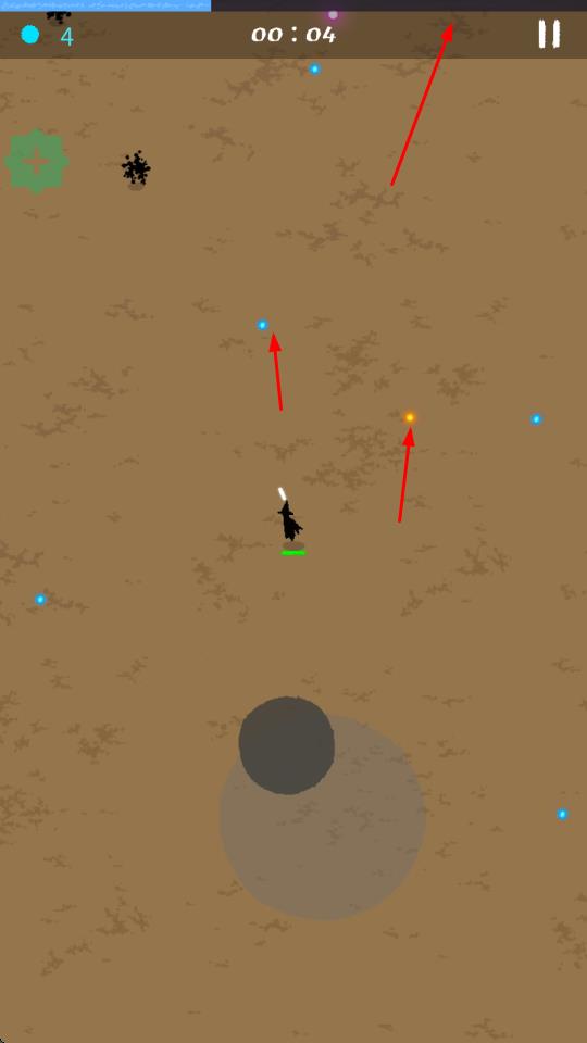 1、進入游戲界面后,操控角色在場景中移動,收集藍色、黃色光點,積累分數(shù),為提升等級做好準備。