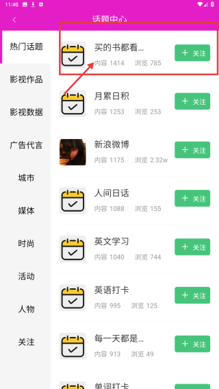 2、在話題選擇頁面,點擊買的書都看了么話題,進入該話題詳情頁。