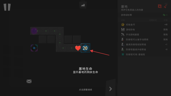 2、進(jìn)入游戲,留意基地生命值,如顯示20,這代表基地可承受的敵人攻擊次數(shù)。
