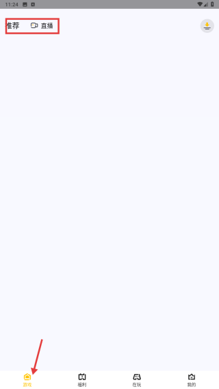 1、進(jìn)入游戲類首頁(yè),可查看推薦、直播板塊內(nèi)容,了解熱門游戲及直播信息。