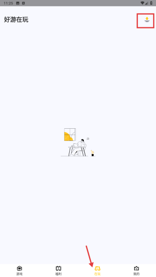 3、點(diǎn)擊底部在玩選項(xiàng),進(jìn)入好游在玩頁(yè)面,查看當(dāng)前在玩的優(yōu)質(zhì)游戲推薦。