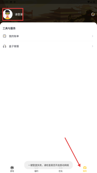 4、點(diǎn)擊底部我的選項(xiàng),進(jìn)入個(gè)人中心頁(yè)面,可進(jìn)行登錄操作,登錄后能使用我的榜單、盒子客服等工具與服務(wù)。