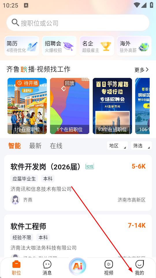 1、打開(kāi)齊魯人才APP,點(diǎn)擊底部導(dǎo)航欄的我的選項(xiàng),進(jìn)入個(gè)人頁(yè)面。