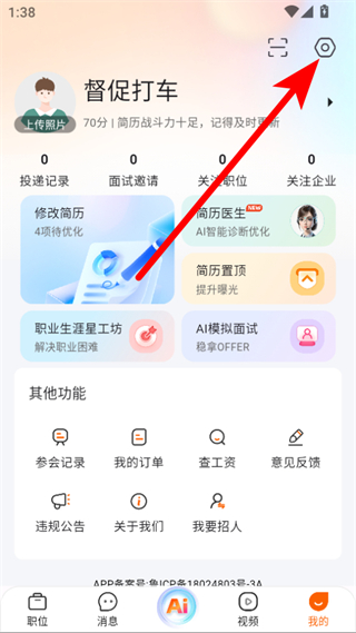 2、在個(gè)人頁(yè)面中,點(diǎn)擊右上角的設(shè)置圖標(biāo),進(jìn)入設(shè)置界面。