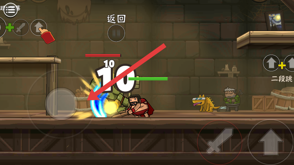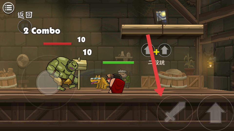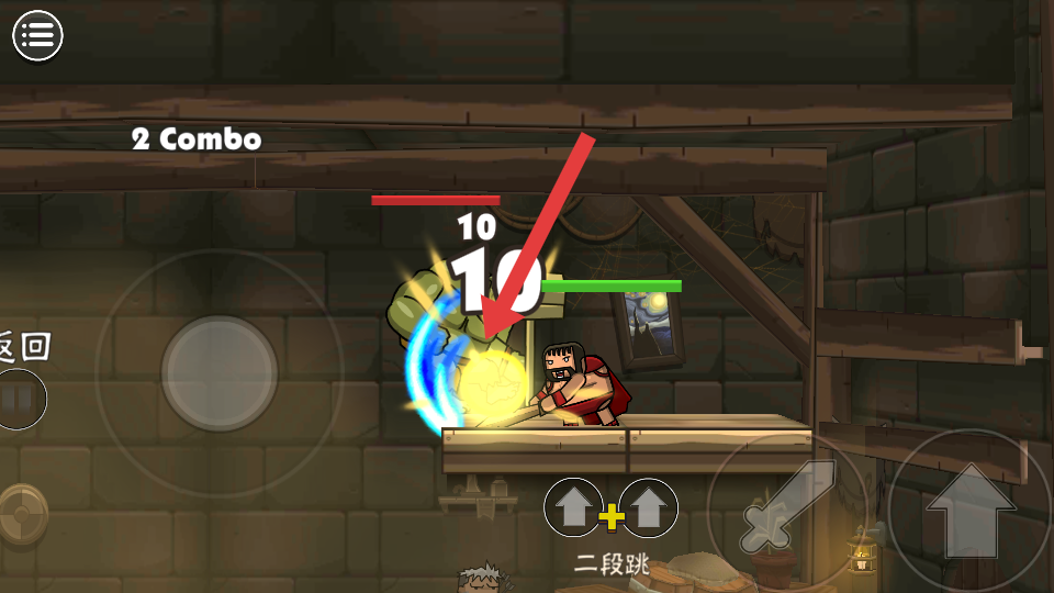 1、先熟悉基礎(chǔ)移動(dòng)與跳躍操作,點(diǎn)擊屏幕左側(cè)方向鍵控制角色左右移動(dòng),點(diǎn)擊右側(cè)跳躍按鈕完成單次跳躍,跨越較高障礙物。
