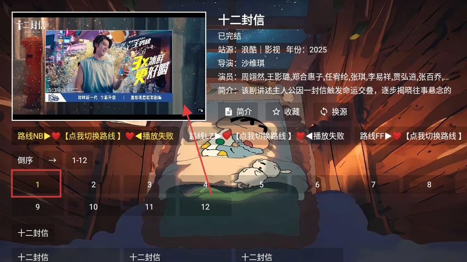 3、在十二封信播放頁面,選擇第1集,點擊小屏即可放大。