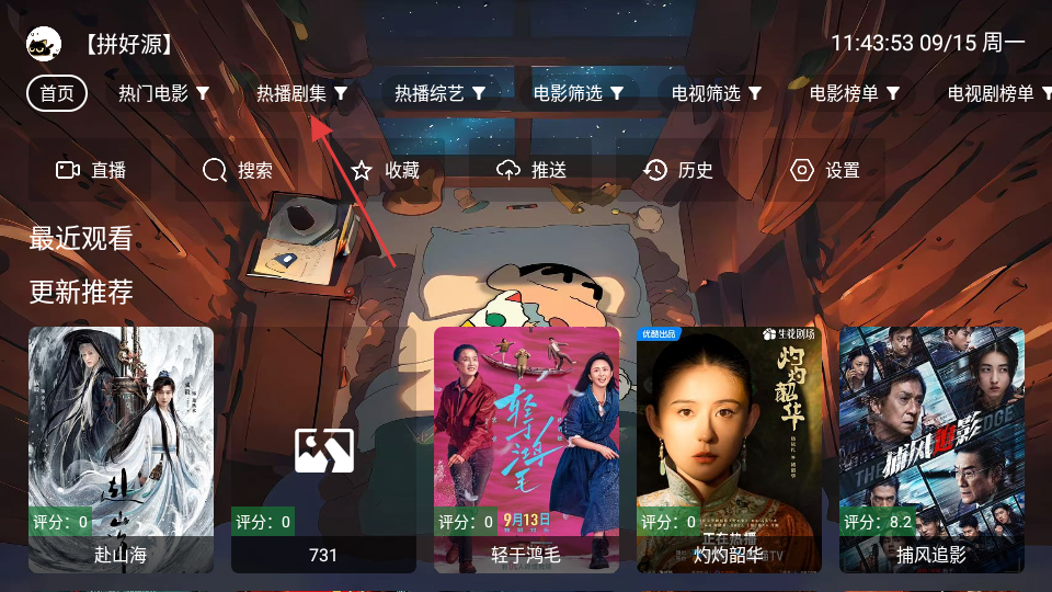 1、點擊頁面上方的熱播劇集選項,進入熱播劇集頁面。