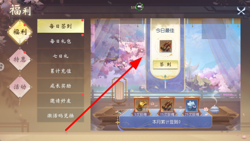 4、還能在福利界面,進(jìn)行每日簽到等操作,領(lǐng)取相應(yīng)獎(jiǎng)勵(lì),這些獎(jiǎng)勵(lì)能助力角色培養(yǎng)成長(zhǎng),更好地闖蕩冒險(xiǎn)武俠世界。