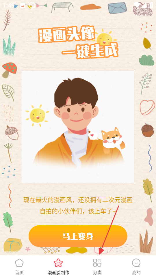 1、打開頭像精選,點(diǎn)擊底部的分類按鈕,進(jìn)入分類頁面。