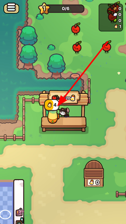 3、采集到水果后,前往售賣點(diǎn),將水果放置到售賣位置,設(shè)置好售賣相關(guān)的內(nèi)容,等待顧客前來購(gòu)買,以此獲取商店收益。