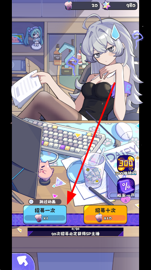 3、然后進入招募環(huán)節(jié),可選擇招募一次或招募十次,通過招募獲取主播,不同的主播有著不同的特點,需根據(jù)需求挑選合適的主播。