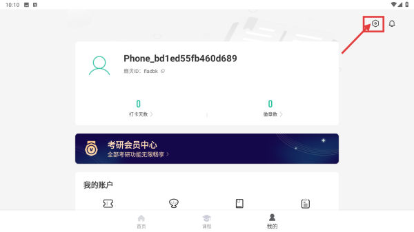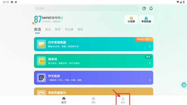 1、打開考研學(xué)習(xí)類APP,點(diǎn)擊底部我的選項(xiàng),進(jìn)入個人中心頁面。