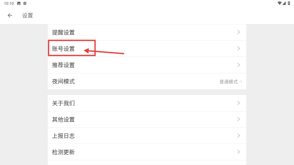 3、在設(shè)置頁面,點(diǎn)擊賬號設(shè)置選項(xiàng),進(jìn)入賬號設(shè)置頁面。