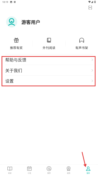 4、若需查看幫助與反饋、關(guān)于我們或設(shè)置等信息,點(diǎn)擊底部我的選項(xiàng),進(jìn)入個(gè)人中心頁面進(jìn)行查看。