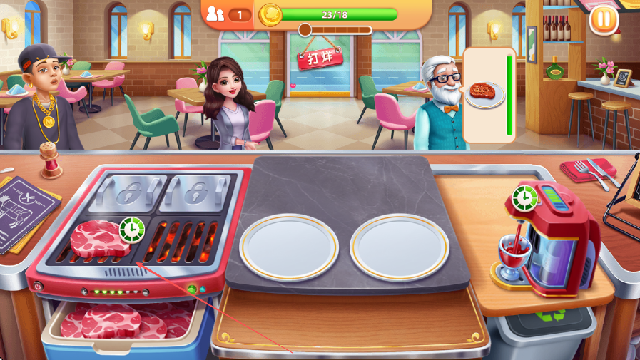 2、時(shí)間管理挑戰(zhàn):隨著顧客數(shù)量增加,玩家需合理分配時(shí)間,平衡多份訂單的制作進(jìn)度,避免顧客等待過久,鍛煉時(shí)間規(guī)劃與統(tǒng)籌能力。