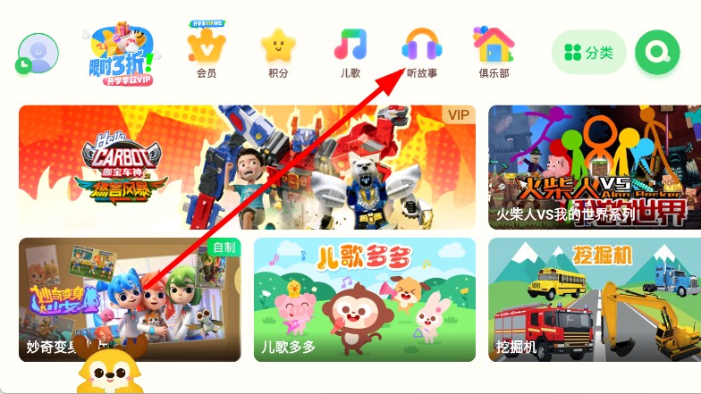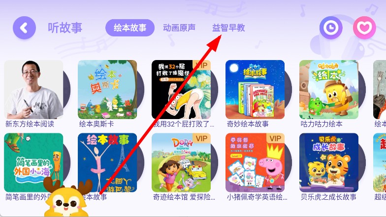 2、在聽故事頁面,選擇益智早教分類。
