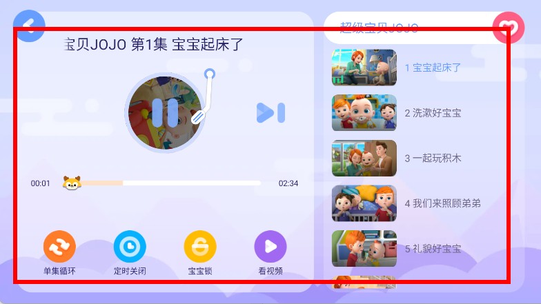 4、進入播放界面,收聽內(nèi)容,還能使用單集循環(huán)、定時關(guān)閉、寶寶鎖、看視頻等功能。