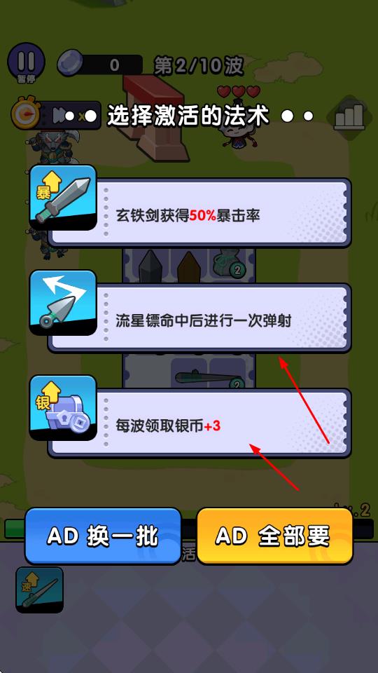 3、戰(zhàn)斗過程中會(huì)出現(xiàn)選擇激活法術(shù)的界面,增強(qiáng)戰(zhàn)斗效果或獲取資源。