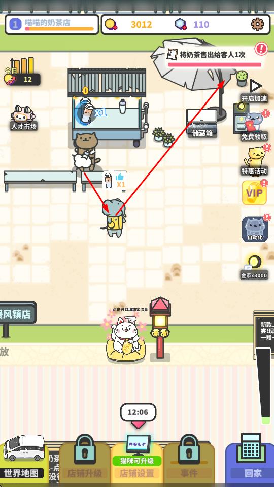 4、營業(yè)過程中,制作奶茶并售出給客人,完成售賣任務,同時可利用店鋪升級、自動化等功能,提升店鋪運營效率和收益。
