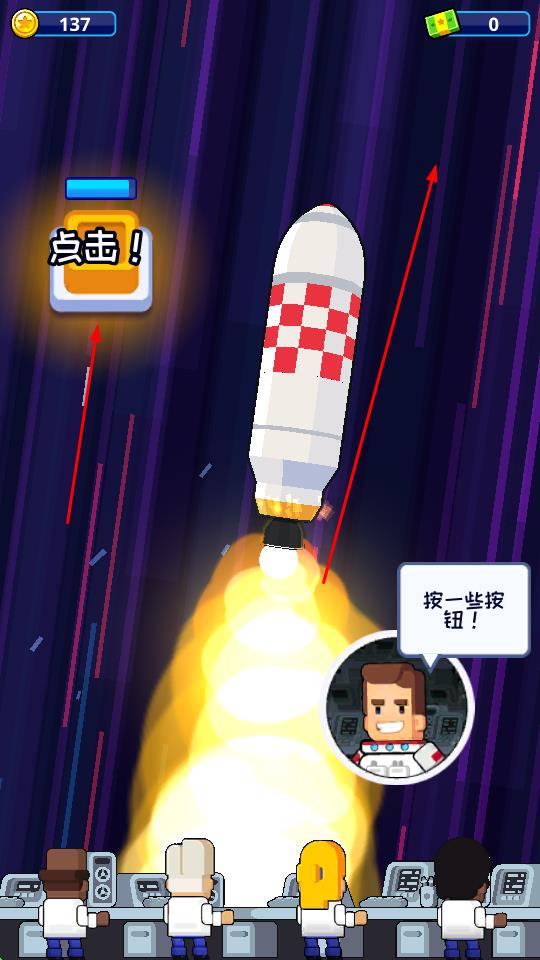 4、火箭發(fā)射時,點擊點擊按鈕等操作,助力火箭順利發(fā)射升空,完成發(fā)射任務(wù)。