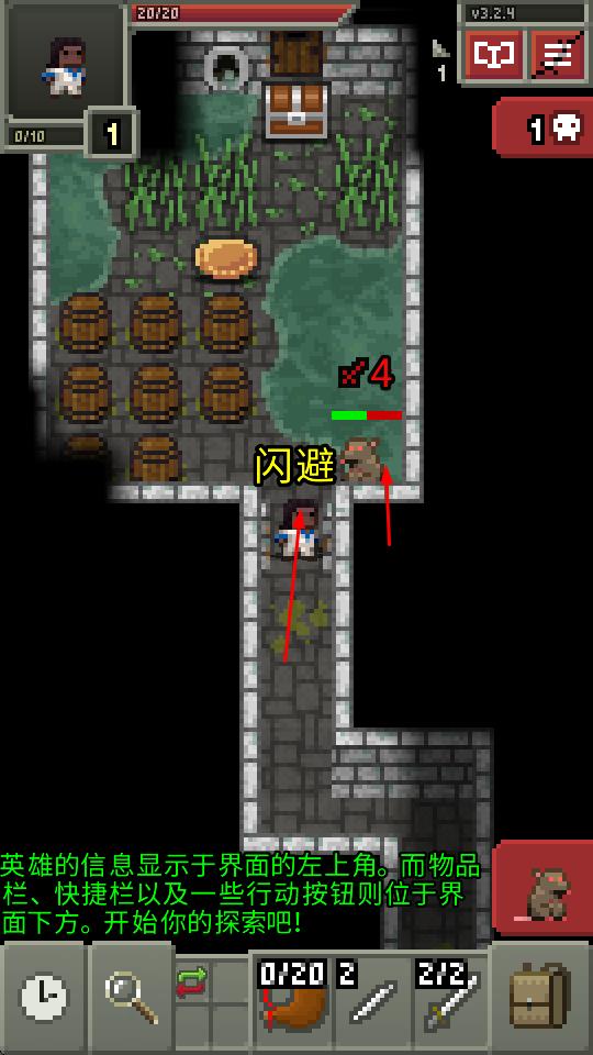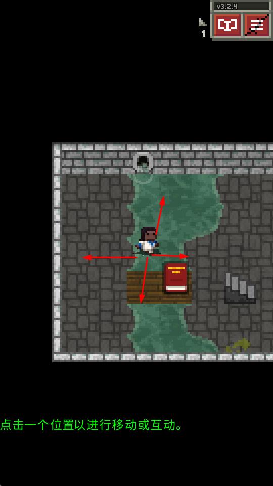 2、在像素風(fēng)格的地牢場(chǎng)景中,點(diǎn)擊位置可控制角色移動(dòng)或與場(chǎng)景互動(dòng),探索地牢的各個(gè)區(qū)域。