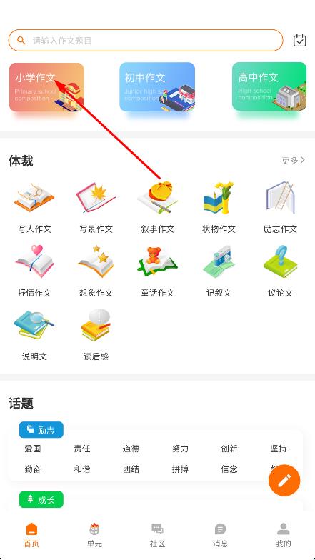1、在作文吧首頁(yè),點(diǎn)擊小學(xué)作文,進(jìn)入小學(xué)作文頁(yè)面。