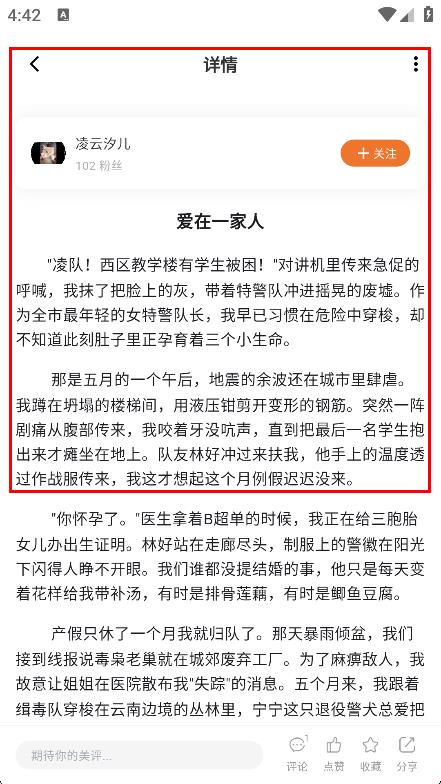 4、隨后我們?cè)谧魑脑斍轫?yè)面,可查看愛(ài)在一家人的詳細(xì)內(nèi)容。