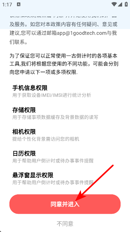 1、在權(quán)限說明頁面,點擊同意并進入,完成權(quán)限確認并進入頁面。