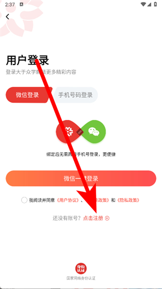 3、在用戶登錄頁面,點擊還沒有賬號點擊注冊。
