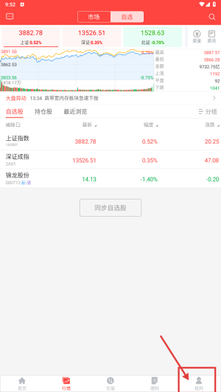 1、打開理財類應(yīng)用,點擊底部我的選項,進(jìn)入個人中心頁面。