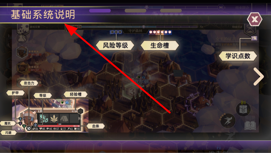2、提供基礎(chǔ)系統(tǒng)說明,其中包含風(fēng)險(xiǎn)等級、生命槽、學(xué)識(shí)點(diǎn)數(shù)等各類關(guān)鍵信息,仔細(xì)查看這些說明,能幫助玩家熟悉機(jī)制。