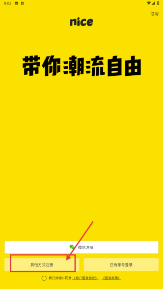 3、在登錄注冊頁面,點擊其他方式注冊選項,展開注冊方式選擇。