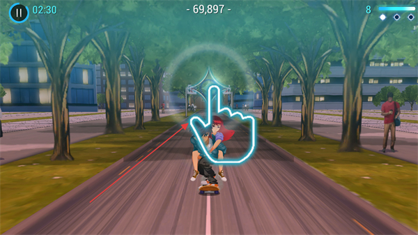 滑板躲避敵人的玩法節(jié)奏緊湊,需快速反應(yīng)應(yīng)對(duì)突發(fā)狀況,成功躲避后能獲得強(qiáng)烈的操作成就感。