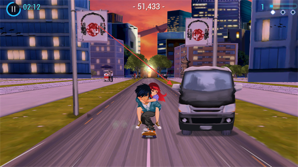 3、滑行過(guò)程中,注意躲避前方出現(xiàn)的障礙物如車輛,保證角色安全。