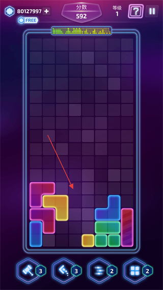 2、新的方塊出現(xiàn)后,規(guī)劃其擺放位置,盡量讓方塊組成完整的橫排或豎排。
