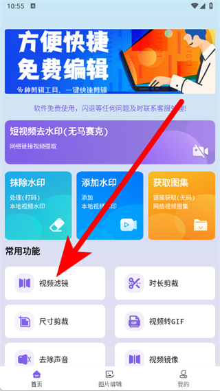 1、打開(kāi)免費(fèi)視頻去水印擦除大師,點(diǎn)擊視頻濾鏡。