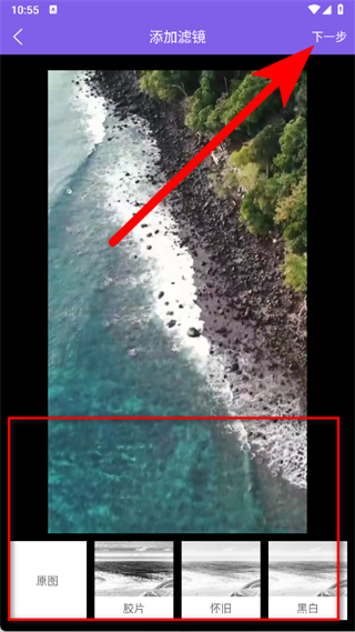 3、選擇濾鏡效果后,點(diǎn)擊下一步。