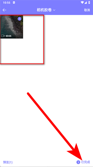 2、在相機(jī)膠卷中選擇視頻,點(diǎn)擊已完成。